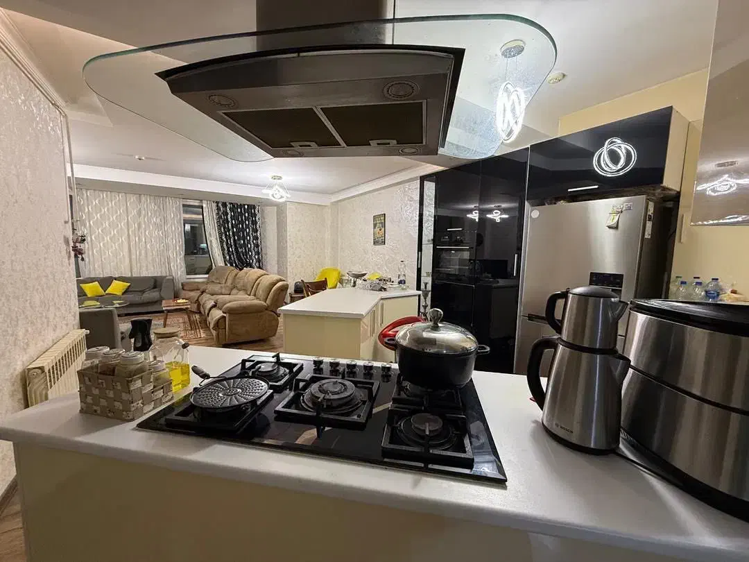 🍳 آشپزخانه با طراحی جزیره ای و مجهز به فر، ماکروفر و گاز می باشد.