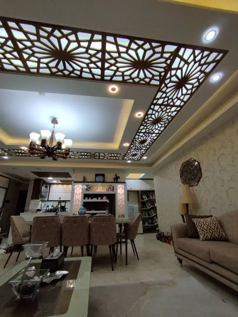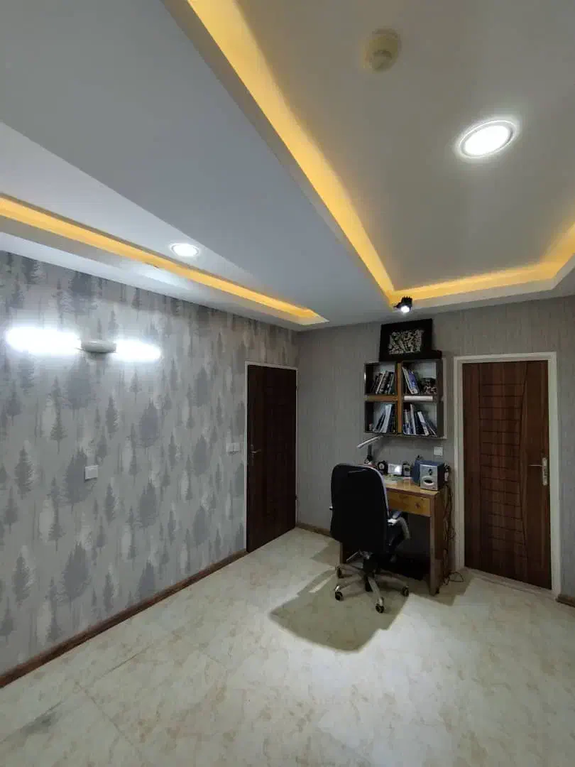 🛋️ در این واحد از متریال با کیفیت و طراحی مدرن استفاده شده است. کاغذ دیواری، کناف کاری و نورپردازی، زیبایی فضا را دوچندان کرده اند.