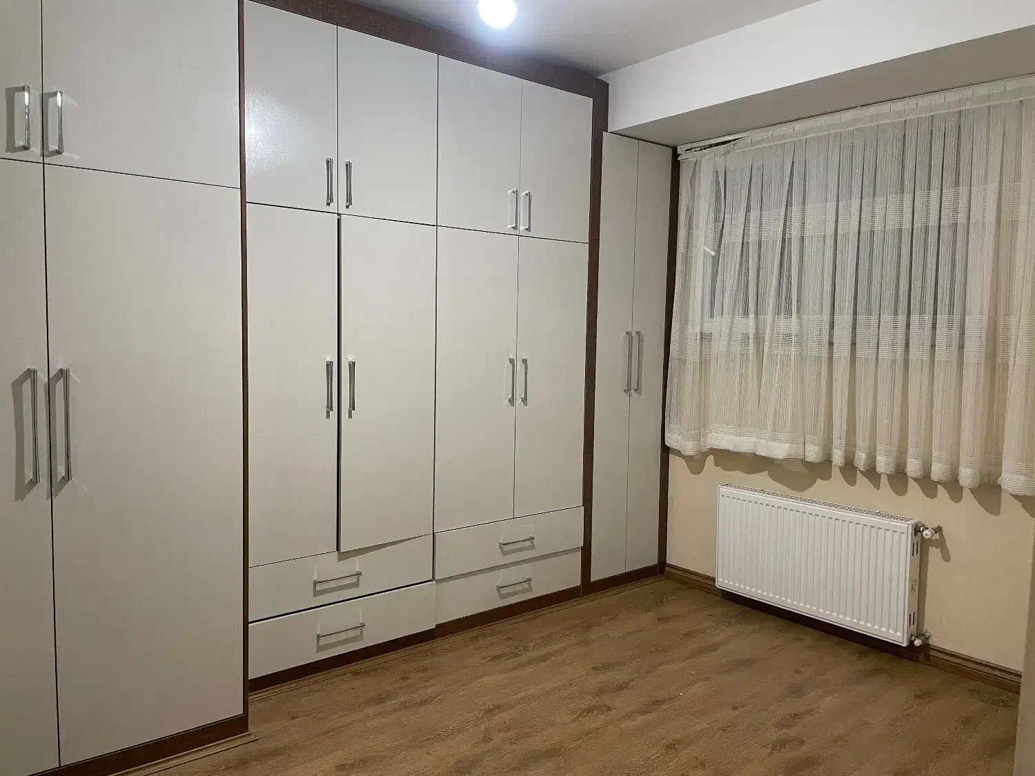 🚪 کمد ی‌های جادار و کف‌پوش پارکت، فضای ذخیره‌سازی و زیبایی را به همراه دارند.
