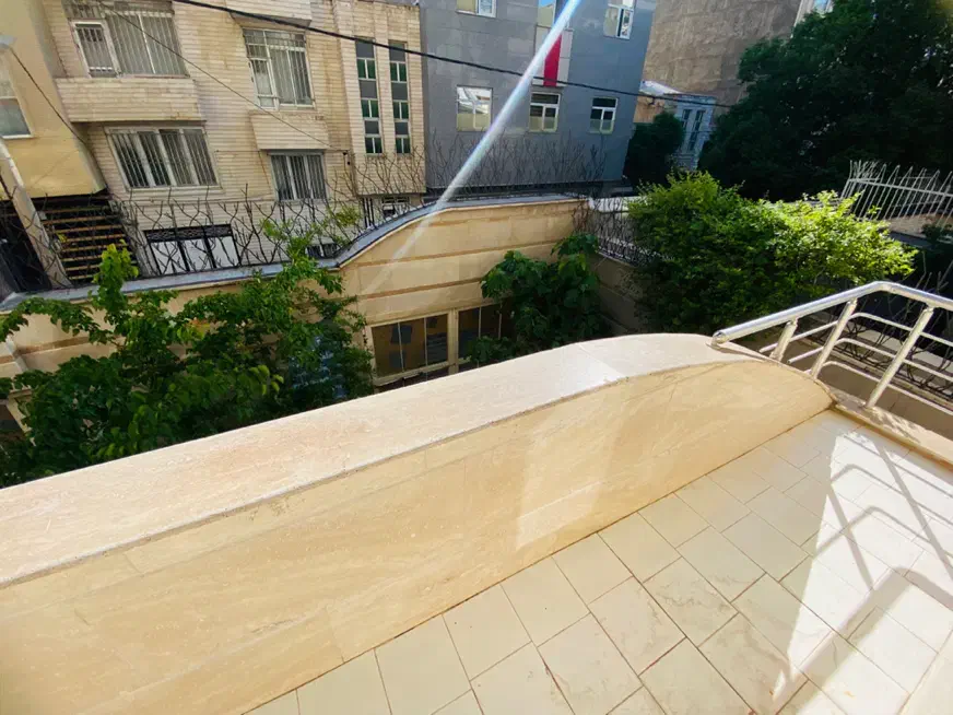 🌳 حیاط ساختمان مشجر و زیبا است.