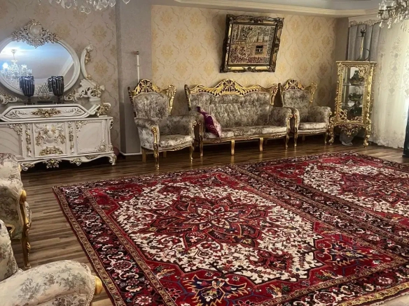 🛋️ طراحی داخلی این آپارتمان به گونهای است که فضای پذیرایی بزرگ و بدون فضای پرت را ارائه میدهد.