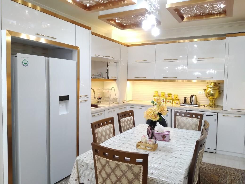 🍽️ آشپزخانه با کابینت‌های هایگلاس اصل ترکیه طراحی شده است.