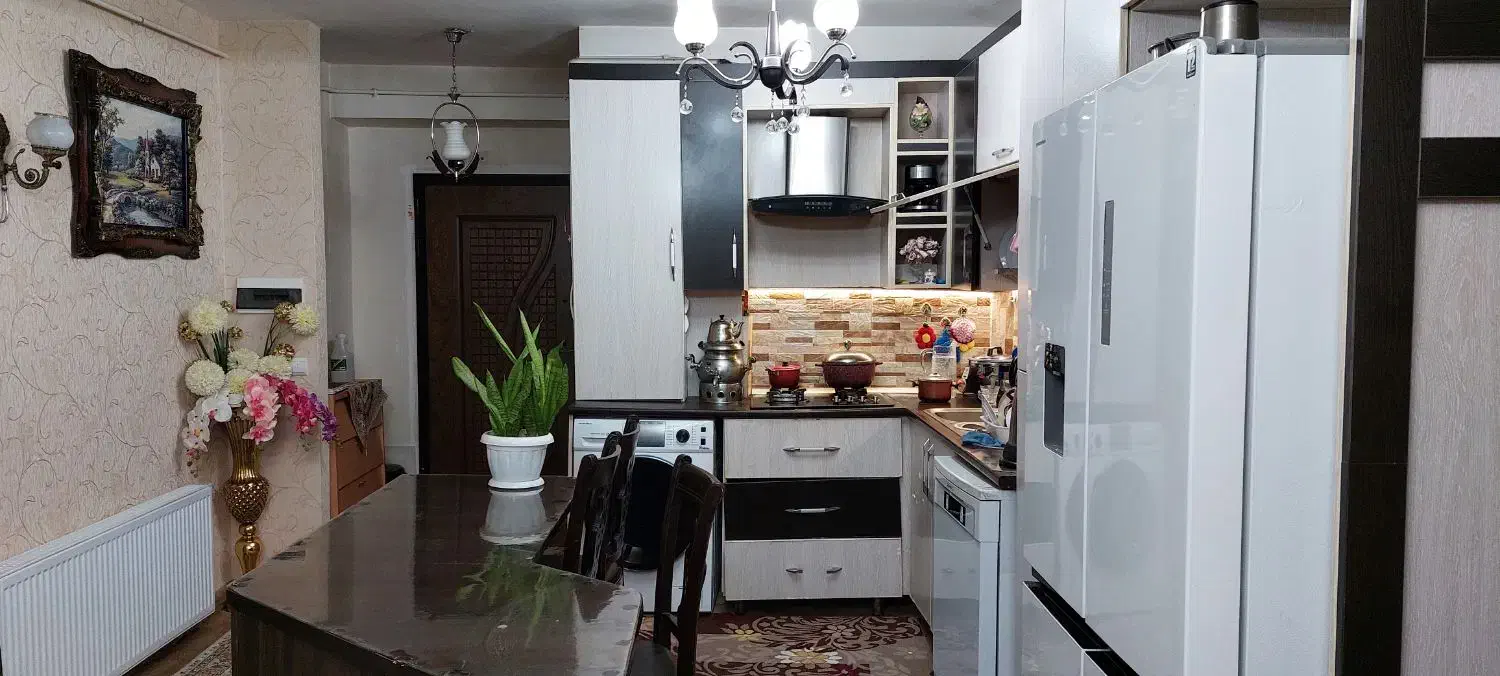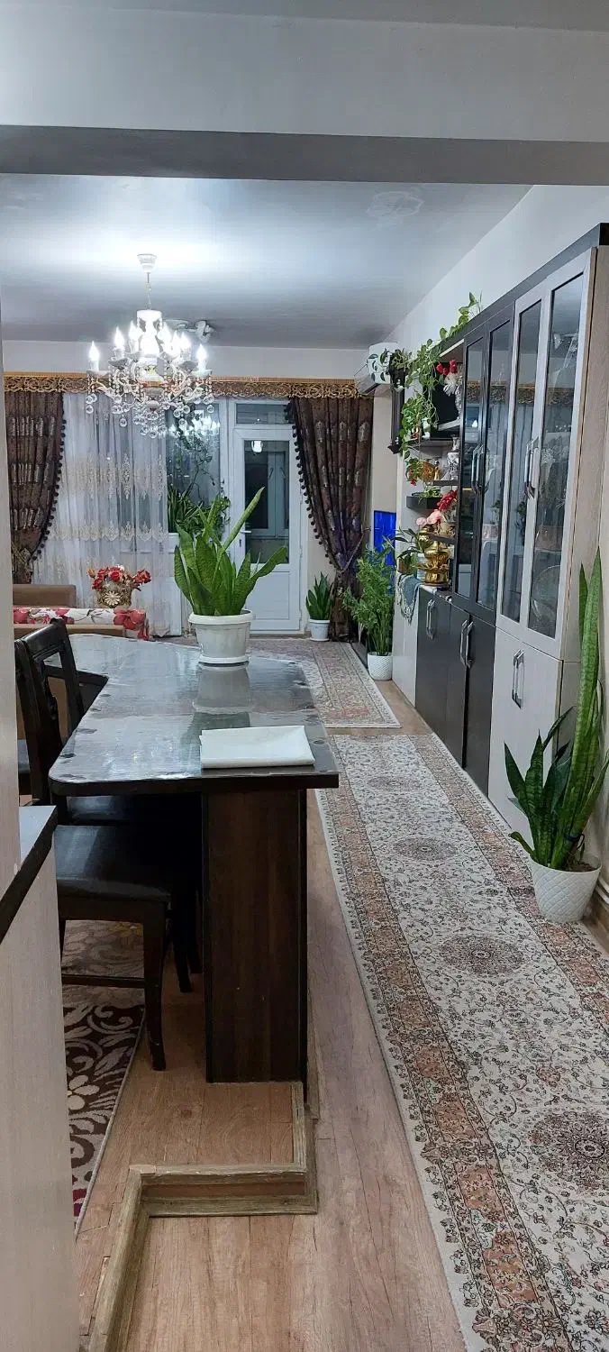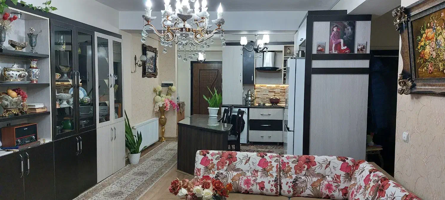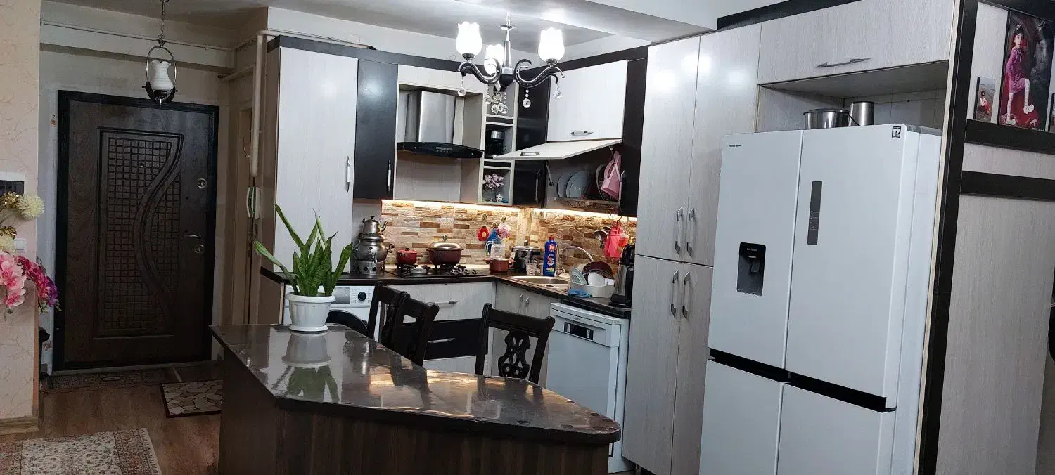 🛠️ واحد دارای کابینتهای ام دی اف، کف پارکت و کمد ی است.