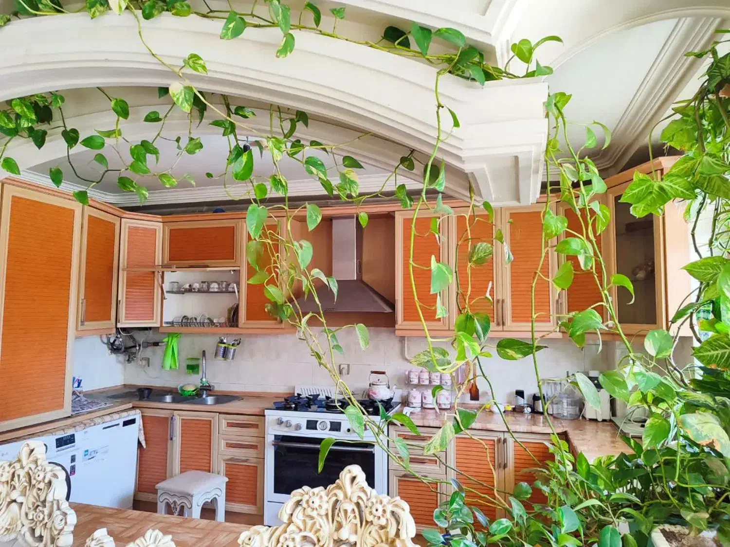 🍳 آشپزخانه با طراحی مدرن، رو به تراس است.